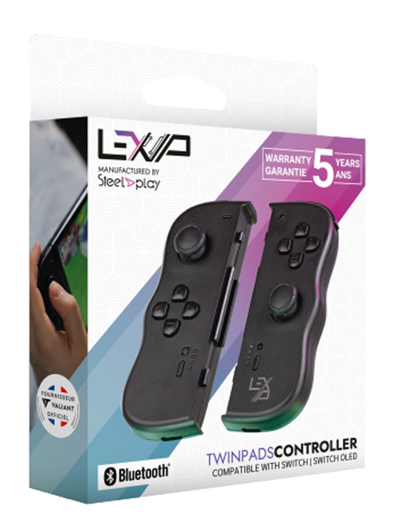 Lexip Twin Pads manufactured by SteelPlay allow you to play on Nintendo Switch™. These controllers feature a motion-sensing and vibration system to make gaming sessions as immersive as possible. They clip easily onto either side of the console, and their ergonomic shape ensures a very good grip.