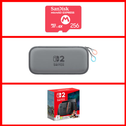 - Bundle includes: Nintendo Switch 2 + Mario Kart World Bundle / SanDisk 256GB microSD Express Card / Nintendo Switch 2 Carrying Case & Screen Protector