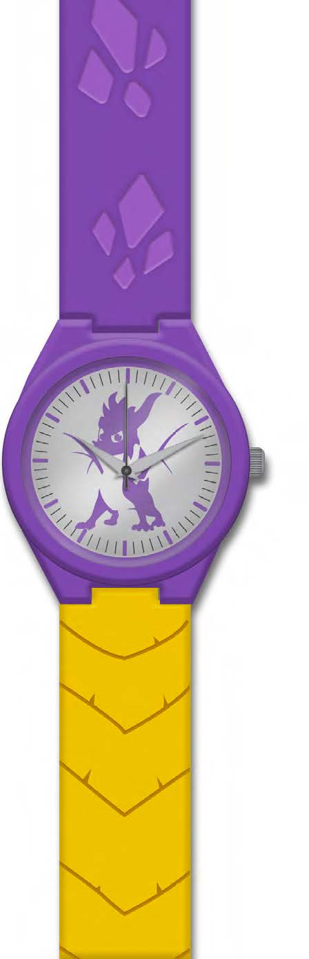 Purple metal face watch featuring Spyro silhouette graphic on sliver face and silicon moulded straps.