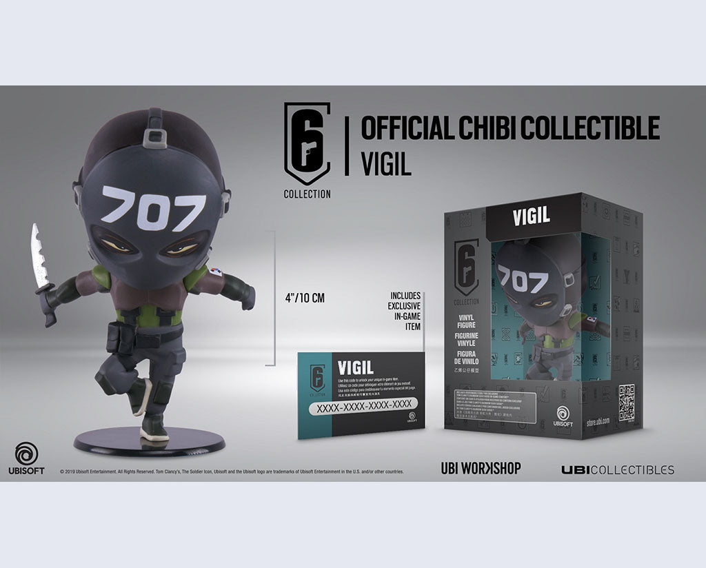 They’re back! Add Vigil, and other operators, to your Six Collection! Ubicollectibles proudly presents a third wave of operators, in the Official Six Collection. Five new operator figurines are now available, and are all based on the operators and gun charms that are found in-game. Each figurine comes with a unique code to unlock exclusive content in Rainbow Six Siege.