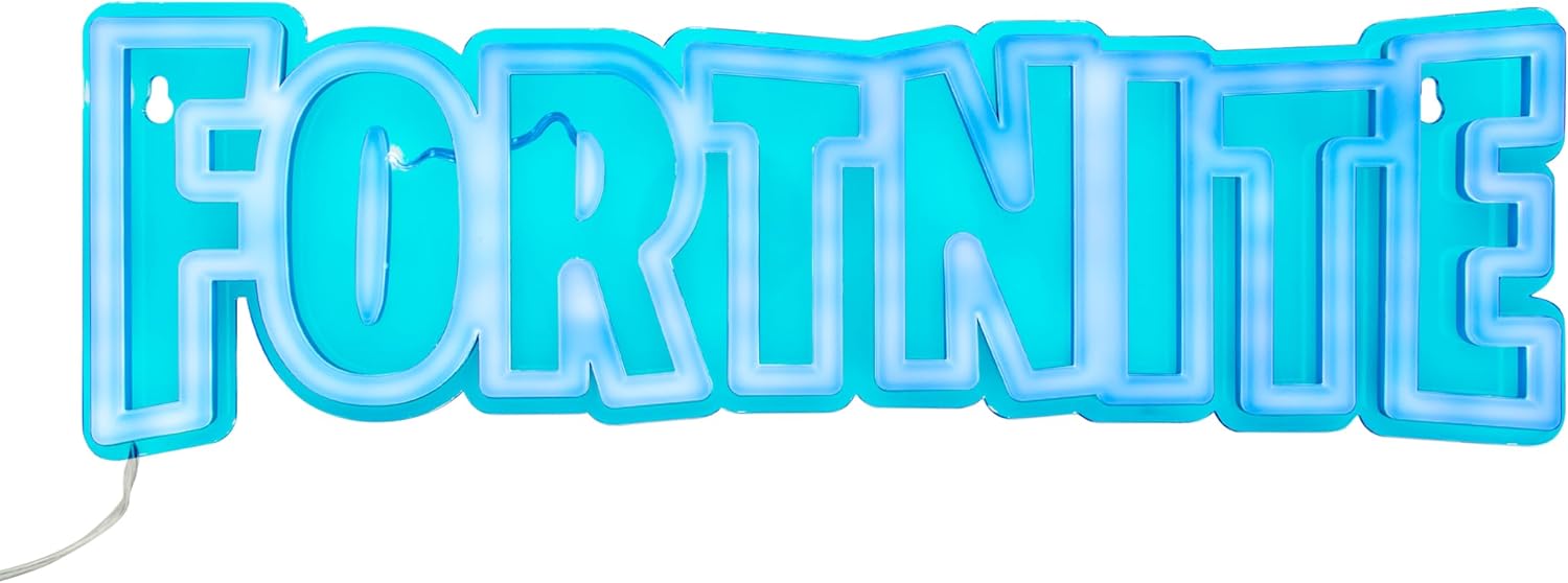 The 40cm (15.7") wide wall-mountable light captures the Fortnite logo, glowing in a vibrant blue that instantly enhances your room's atmosphere. Ideal for decorating a gaming room or bedroom, this neon-style light brings an immersive feel to your space.