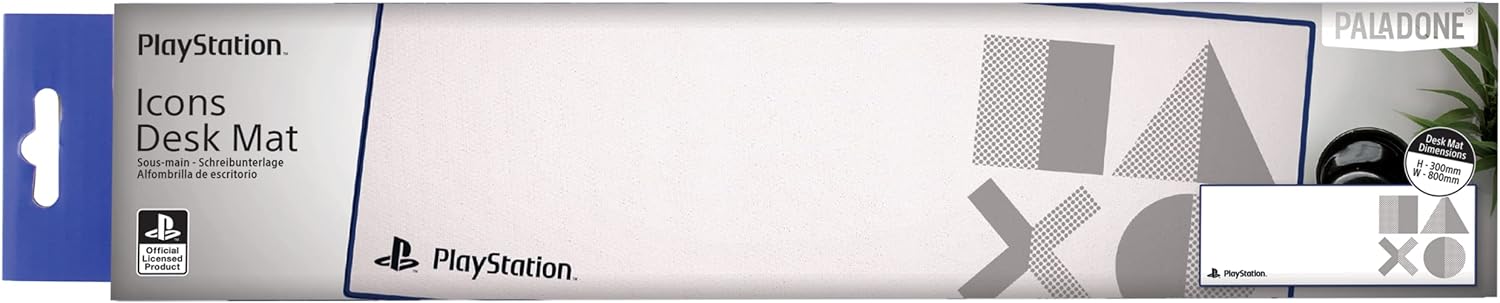 Measuring 30cm x 80cm (12" x 31") with a wipe-clean surface, the white PlayStation 5th Generation Icons Desk Mat is decorated on the right-hand side with iconic action buttons.