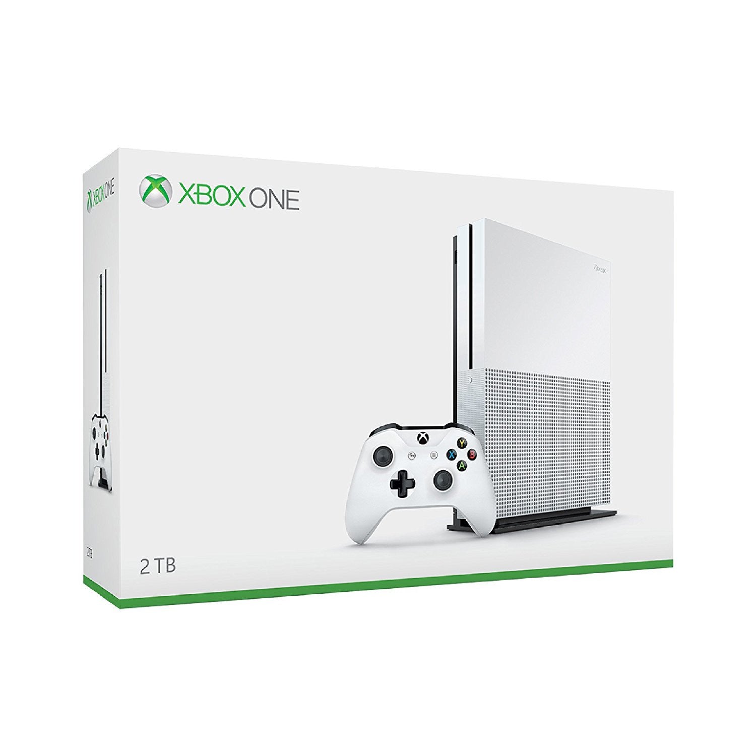 Includes Xbox One S console, 2TB Hard Drive (Internal), Xbox Wireless Controller (with 3.5mm headset jack), Console stand (for vertical orientation), HDMI cable, AC Power cable, 14-day Xbox Live Gold Trial