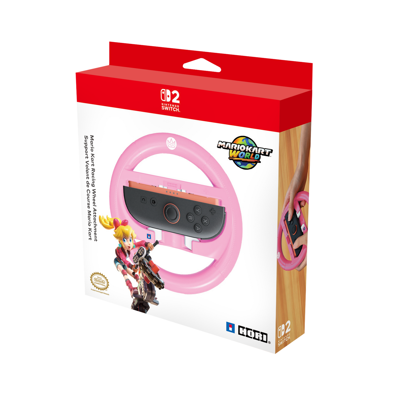 Speed through the Mario Kart World courses with the HORI Mario Kart Racing Wheel Attachment (Peach). Simply pop your Nintendo Switch™ 2 Joy-Con™ 2 or Nintendo Switch™ Joy-Con™ controller (each sold separately) into the racing wheel attachment and enjoy the lightweight feel and textured grips. Featuring responsive shoulder buttons for easy controls and game immersion. Officially Licensed by Nintendo®.