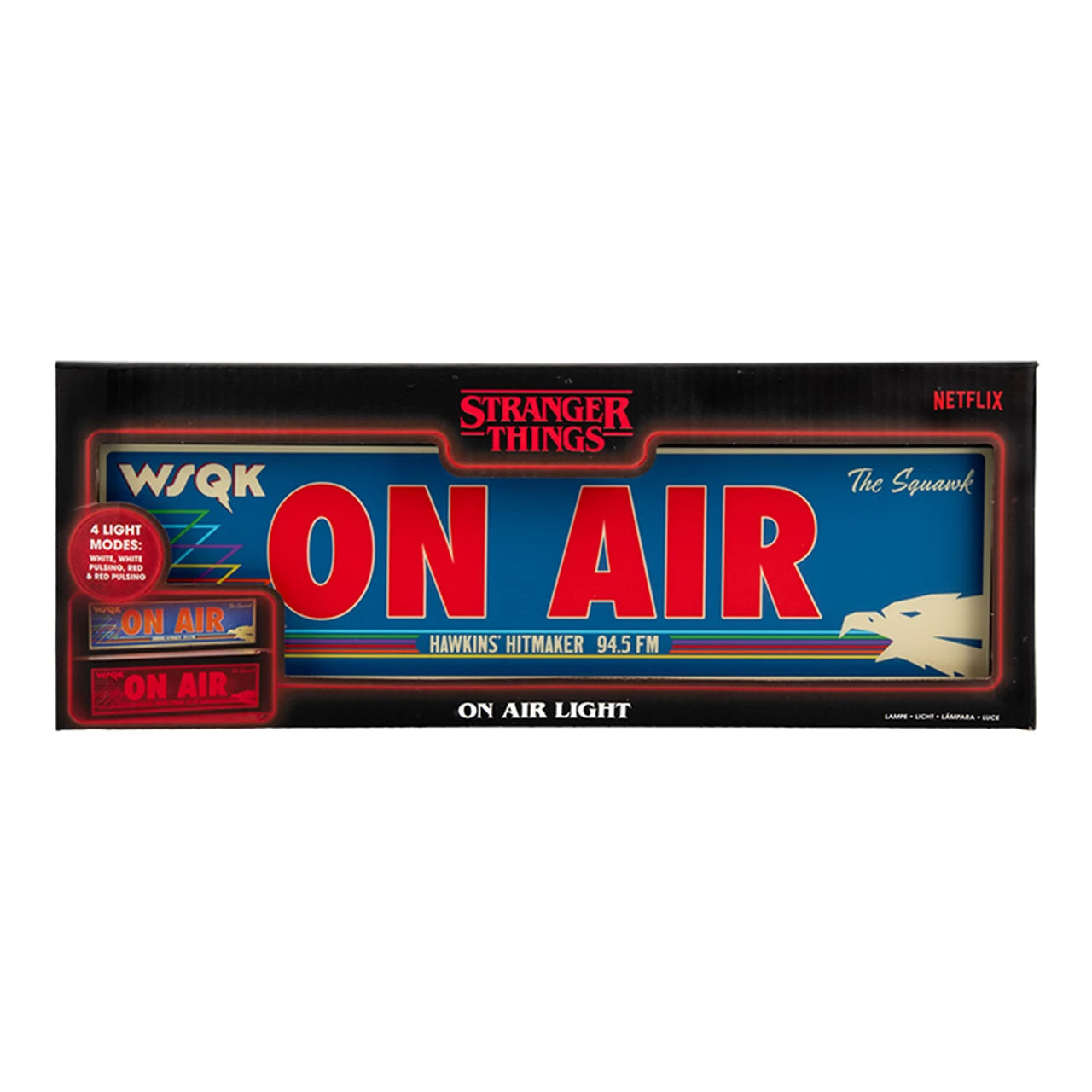 Stylish Stranger Things Lamp - On Air in the style of the WSQK radio from the city of Hawkins. When switched on, the lettering "ON AIR" lights up in red light and gives your room the atmosphere of the series.