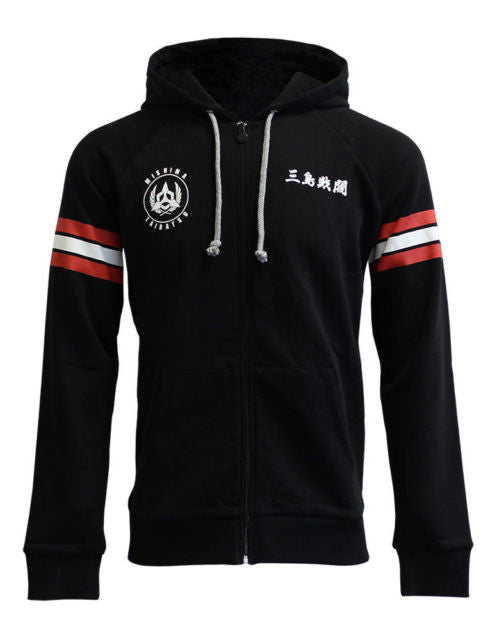 Looks like the HeiHachi Financial Empire is branching out into clothing now! They’ve given up on the brawling and gone into the manufacture of titanic Tekken merchandise, and here’s their first outing – this Official Tekken Mishima Hoody!