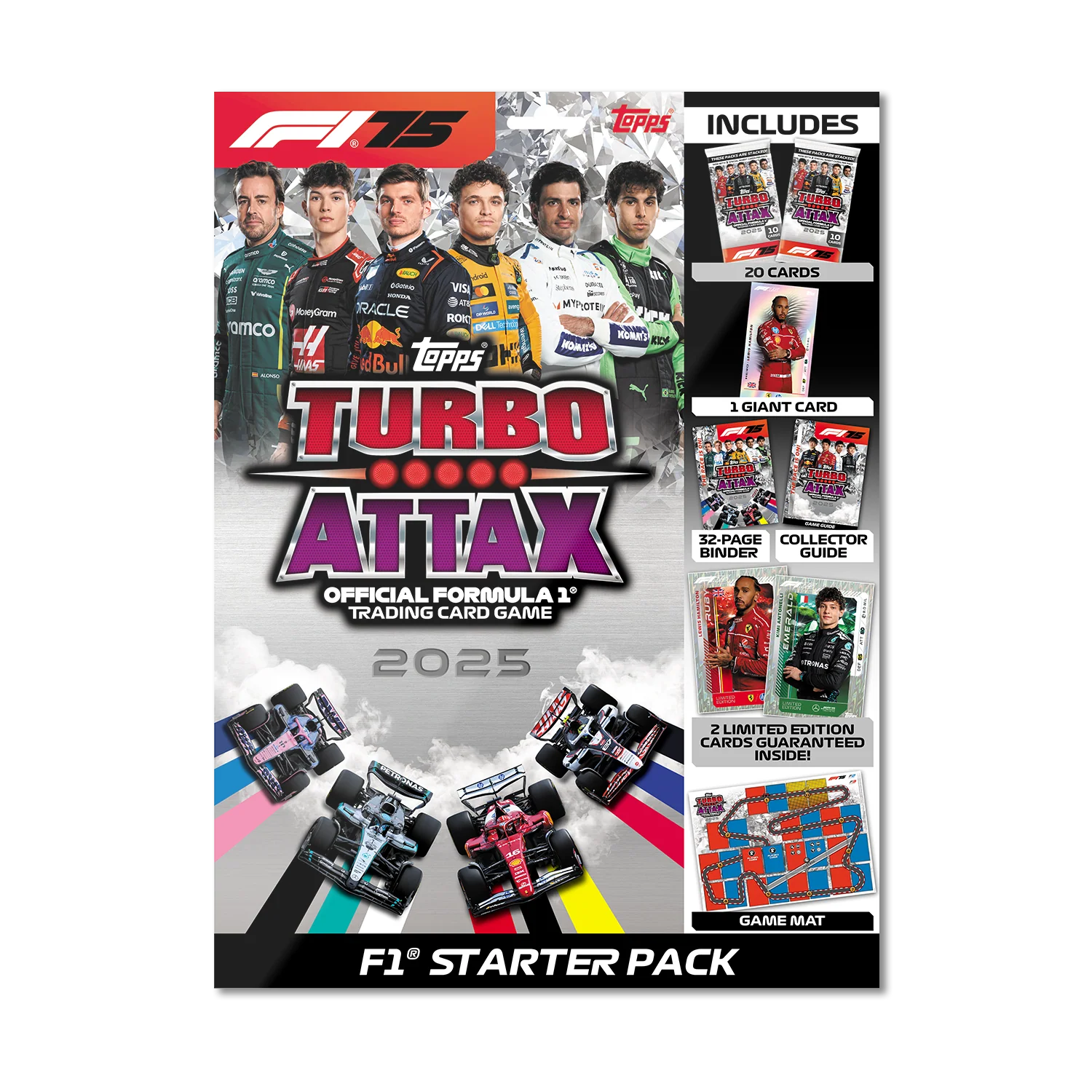 Topps Turbo Attax 2025 races back for another jam-packed season of collecting with over 400 outstanding new cards to collect. New card categories such as Rainmaster, Team Dynasty, Pole Position, Track Profiles, National Pride, Rookie Rising, F2 Team cards, F3 Team cards, Pit Stop Pros and Constructor Kings will inspire every collector. There are returning favourites such as Podium Power, 100 Club, F1 Super Novas, Stars of Tomorrow, Epic Moments plus the biggest ever collection of Legends, with 18 Icons of the Grid cards to collect. Helping to celebrate F1's 75th Anniversary are the rare 'Diamond Pull' chase cards and the Diamond Edition Mega Tin where lucky collectors have a chance to find a Legend Relic card! Look out for fan favourite Limited Editions such as McLaren Papaya, Brazilian Yellow and Red Hot Chilli plus Diamond parallels are available throughout the collection. #thesepacksarestacked